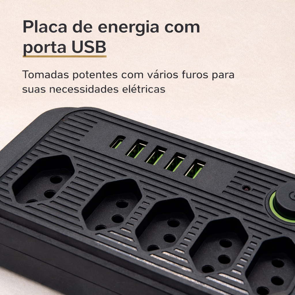 ✔ 5 tomadas de energia para múltiplos dispositivos