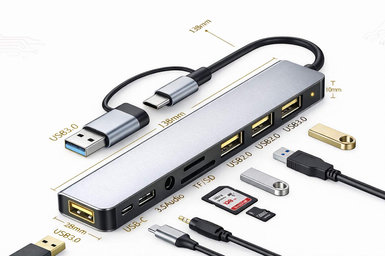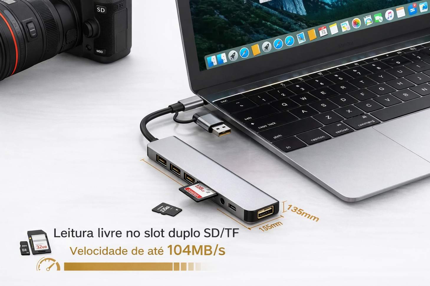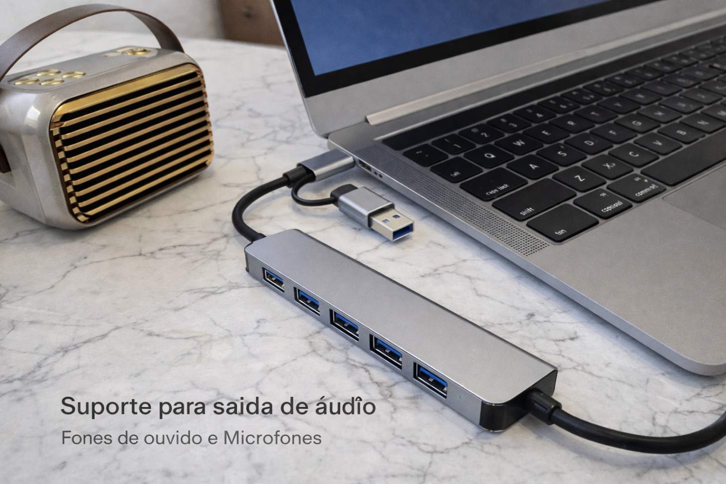 O Hub USB 3.0 8 em 1 é a solução ideal para quem precisa de mais portas e praticidade no dia a dia. Compacto, moderno e fabricado em liga de alumínio, ele transforma uma única entrada em múltiplas conexões de alta velocidade.