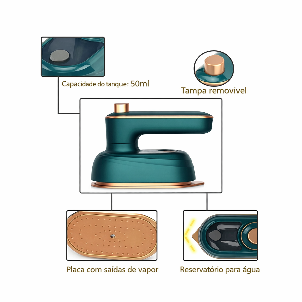 Compacto e leve, esse mini ferro cabe facilmente na sua mala, mochila ou bolsa, sendo perfeito para: